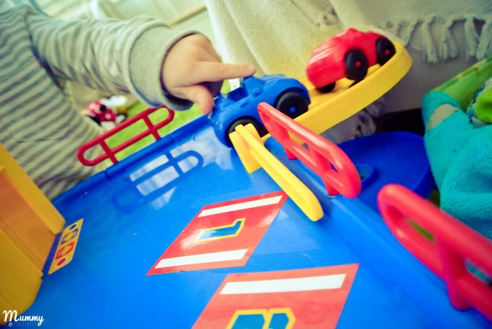 The garage is great for imaginative play, Noah will sit for hours with the little cars – zooming them around the garage and parking them, taking them up and down the lift. His favourite is to use the exit road though – weeeeeeeeeeeeeeeee is a favourite comment when playing with the parking garage. He just loves it!